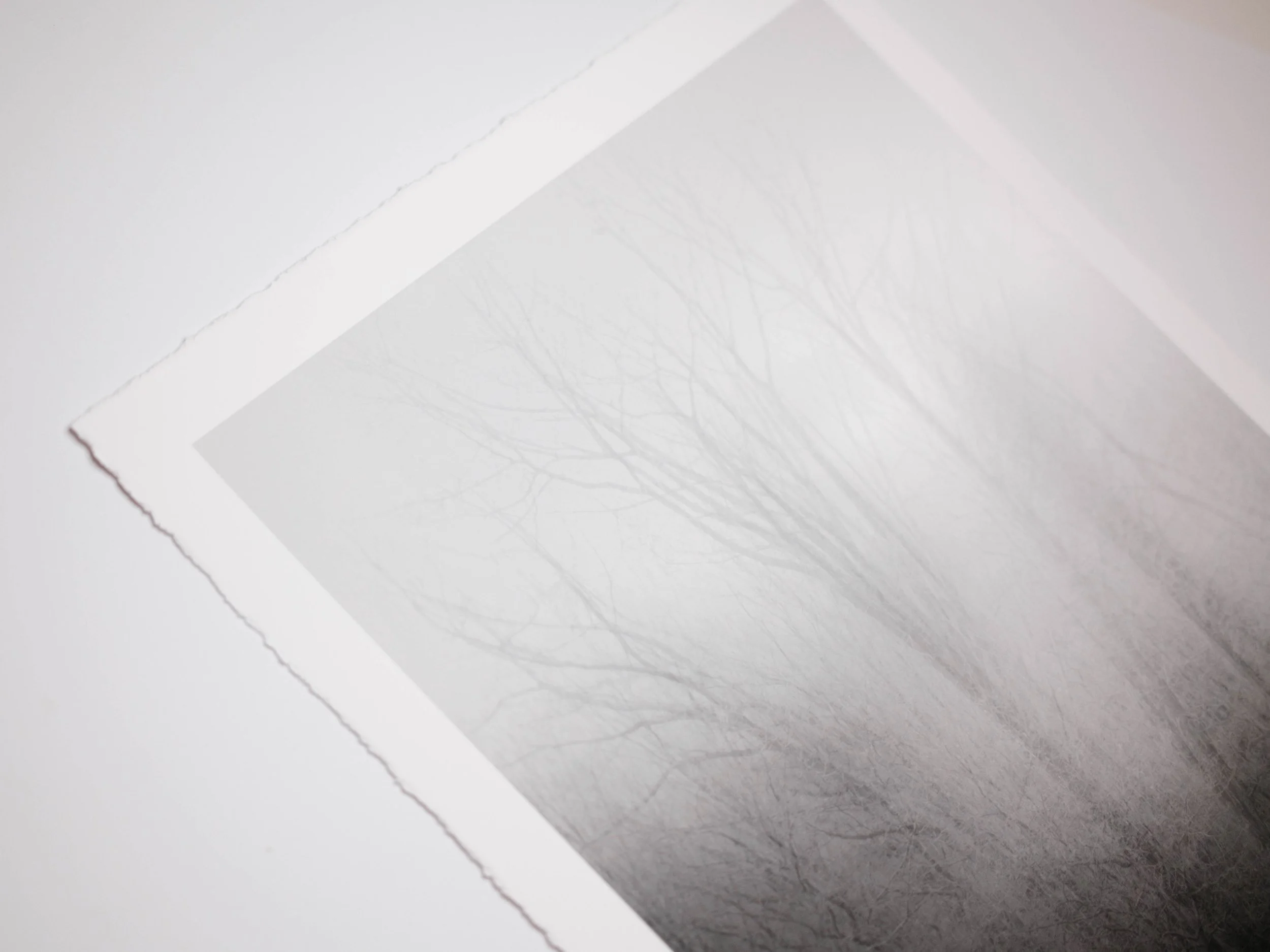 Pas de lithographie ici, mais un travail photographique qui s'en inspire. Chaque cliché devient une invitation à plonger dans un monde où la nature se dévoile progressivement en un mélange de formes et de textures contrastées. C'est dans ces nuances, entre l'ombre et la lumière, que se révèlent les contours délicats qui émergent de l'obscurité.